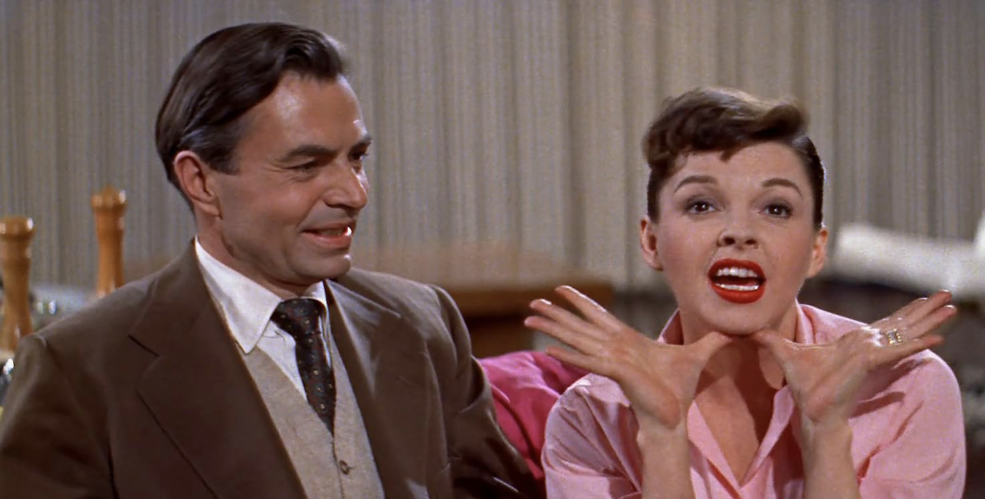 This cautionary Hollywood tale has been produced four times so far (the most recent being the Bradley Cooper/Lady Gaga version), and by now, we’re all familiar with the general plot of A Star is Born. In this version, a talented but undiscovered singer/actress named Esther Blodgett (Judy Garland) gets plucked out of obscurity by movie star Norman Maine (James Mason), resulting in a doomed love affair as her career takes off and his gradually recedes due to uncontrolled alcoholism. Cukor takes his time telling this story, adding musical numbers that don’t do much to advance the plot, though they definitely showcase the star power of Garland. Her best moments are when she’s stripped down, not in costume, singing in a tiny jazz club, or in her own Malibu living room, with no orchestra or soundstage in sight. It makes me wonder if Warner’s wasn’t onto something when they cut a couple of those splashy numbers. Just because you can add more razzle-dazzle doesn’t mean you should. The quiet scenes between Garland and Mason are what make me fall in love with this movie—everything else feels like a distraction.