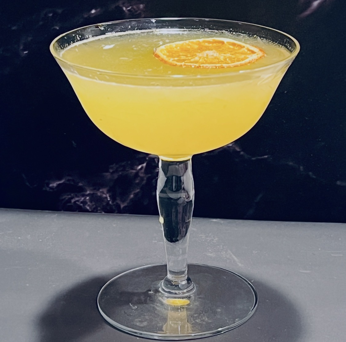 Combine all ingredients in a shaker with ice, and shake to chill. Strain into a coupe glass, and garnish with a twist of orange or dried orange slice.