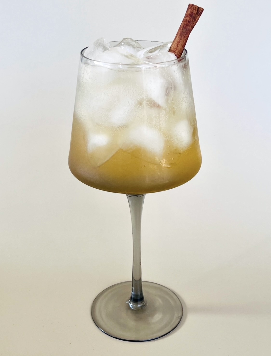 Build drink over ice, stirring gently to combine. Garnish with a cinnamon stick.