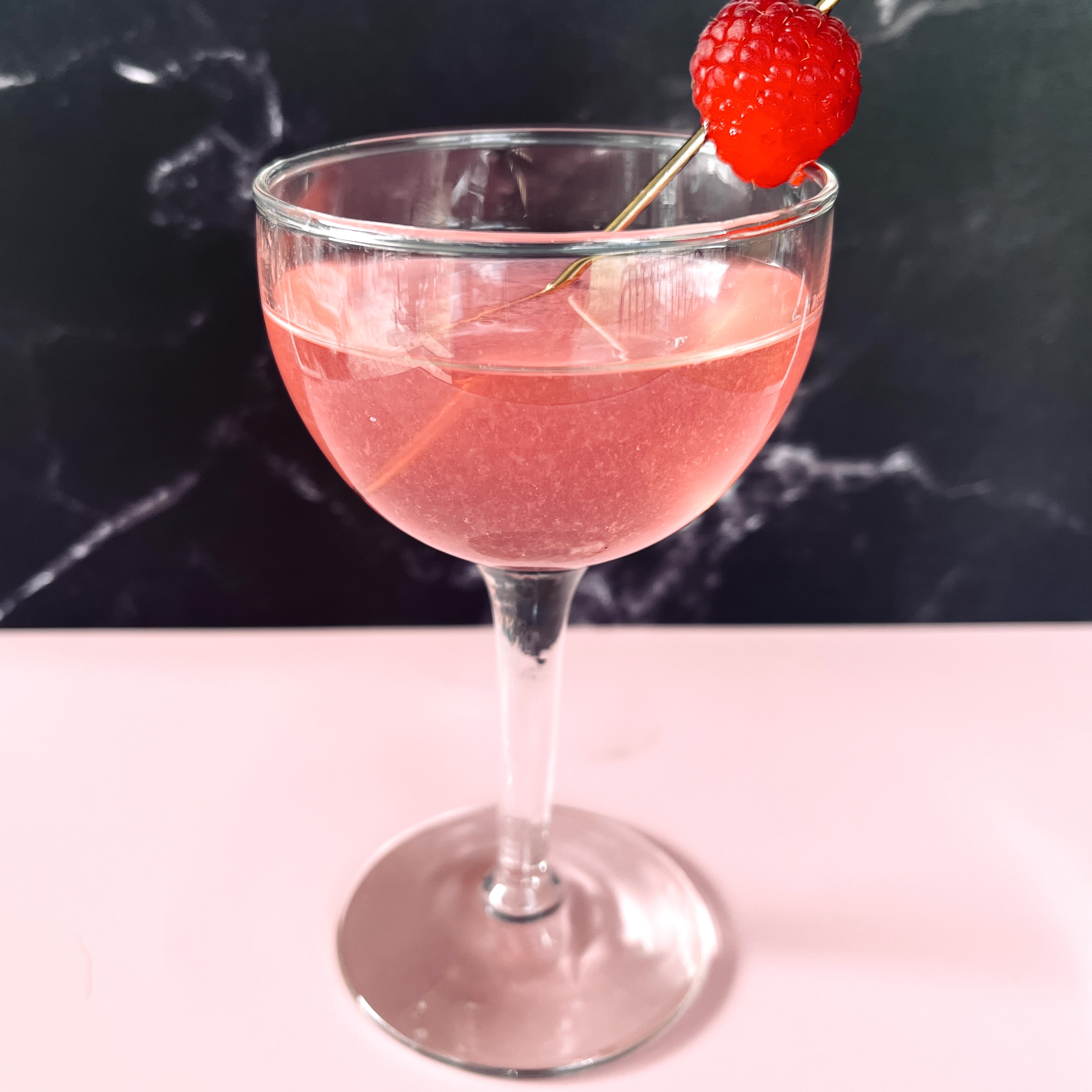 Combine gin, raspberry syrup, lemon juice, and maraschino liqueur in a shaker with ice. Shake to chill, then strain into a cocktail glass. Garnish with a fresh raspberry.