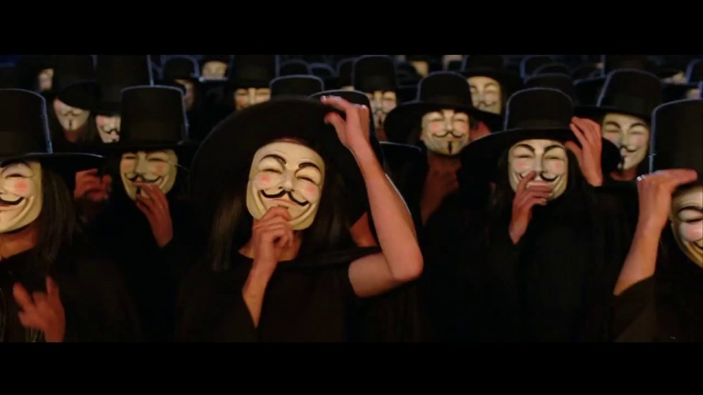 A mysterious virus, political unrest, fascism, mistrust in the news– take your pick of hot-button topics that have morphed from fiction to fact in the past fourteen years. It’s often easy to forget that this movie is within the comic book/superhero genre because it takes so many risks, touching on ideas and themes that are more of a powder keg than anything V could set up under Parliament. And yet the titular character has all the qualities we’ve come to recognize in our archetypal heroes: masked man, impressive fighting skills, intense origin story, complicated relationship with a female, underground lair, etc. He’s a superhero, yet his world is not a mythical Gotham– it’s my world, and yours. If Natalie Portman’s character is meant to represent the everywoman/man in this story, I guess we’re soon about to find out whether our fellow citizens are brave enough to pull that level and say… enough.