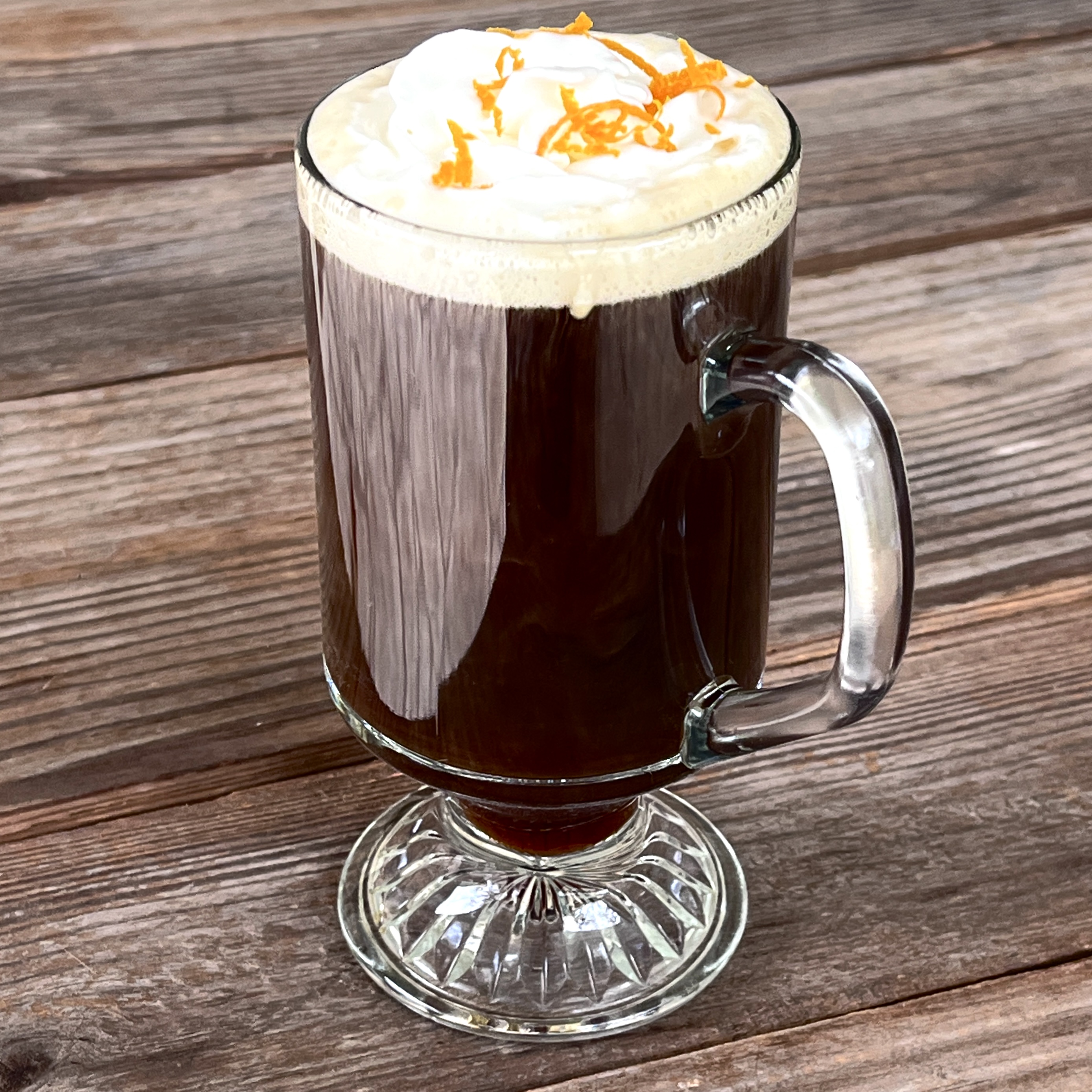 Combine sugar and Cointreau in a cup, stirring until sugar is dissolved. Add coffee and stir gently to combine. Top with whipped cream and orange zest.