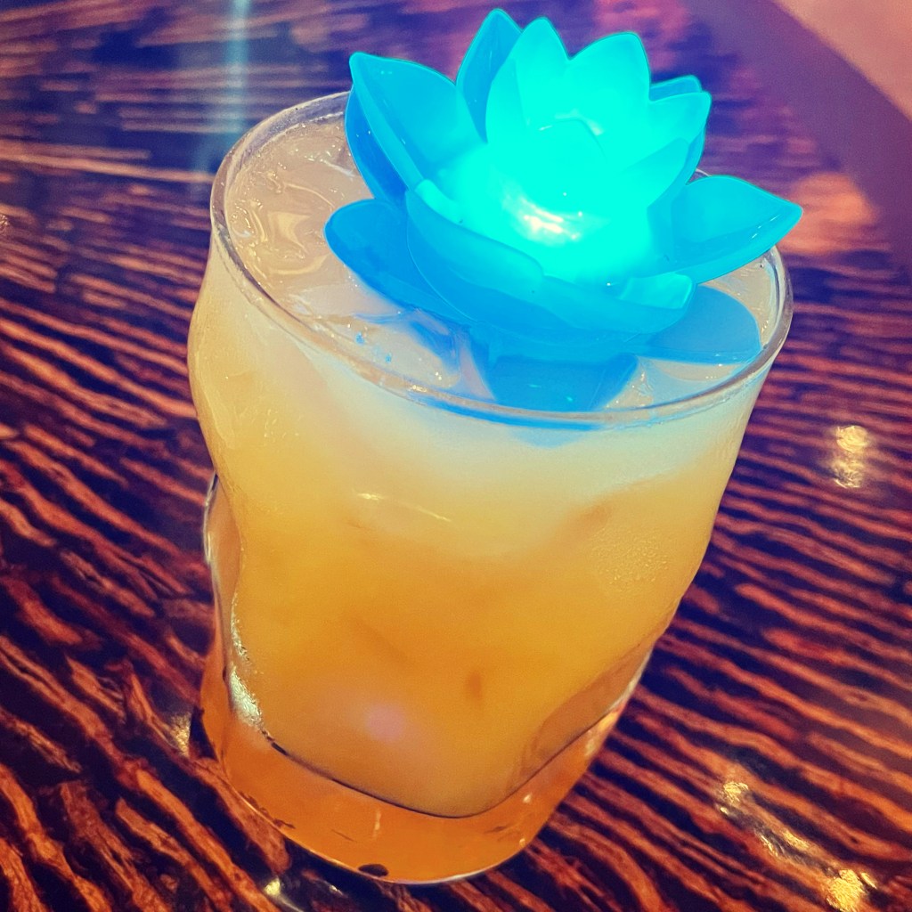 This was my first trip to Disney’s Animal Kingdom, but it definitely won’t be the last! I had a blast on Avatar Flight of Passage (terrible movie, fantastic ride), and saw a real, live flock of pink flamingos. Worth the price of admission, right there. But then I stepped into the Nomad Lounge and found nirvana in the form of delicious small plates, overstuffed armchairs, quiet ambiance, and a huge cocktail list. It was a tough choice, but I went with the Annapurna Zing, a tasty gin/passionfruit/ginger beer concoction that came with a glowing lotus flower. I’ll admit, I was mainly in this for the flower. But the drink was excellent, the conversation even better, and I now have a fun souvenir for my home bar!