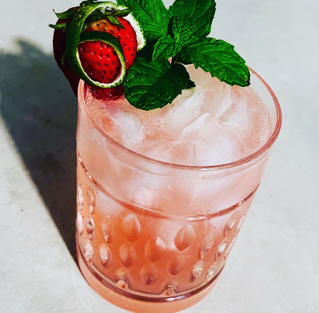 Fresh Strawberry, Mint, Lime Twist for garnish