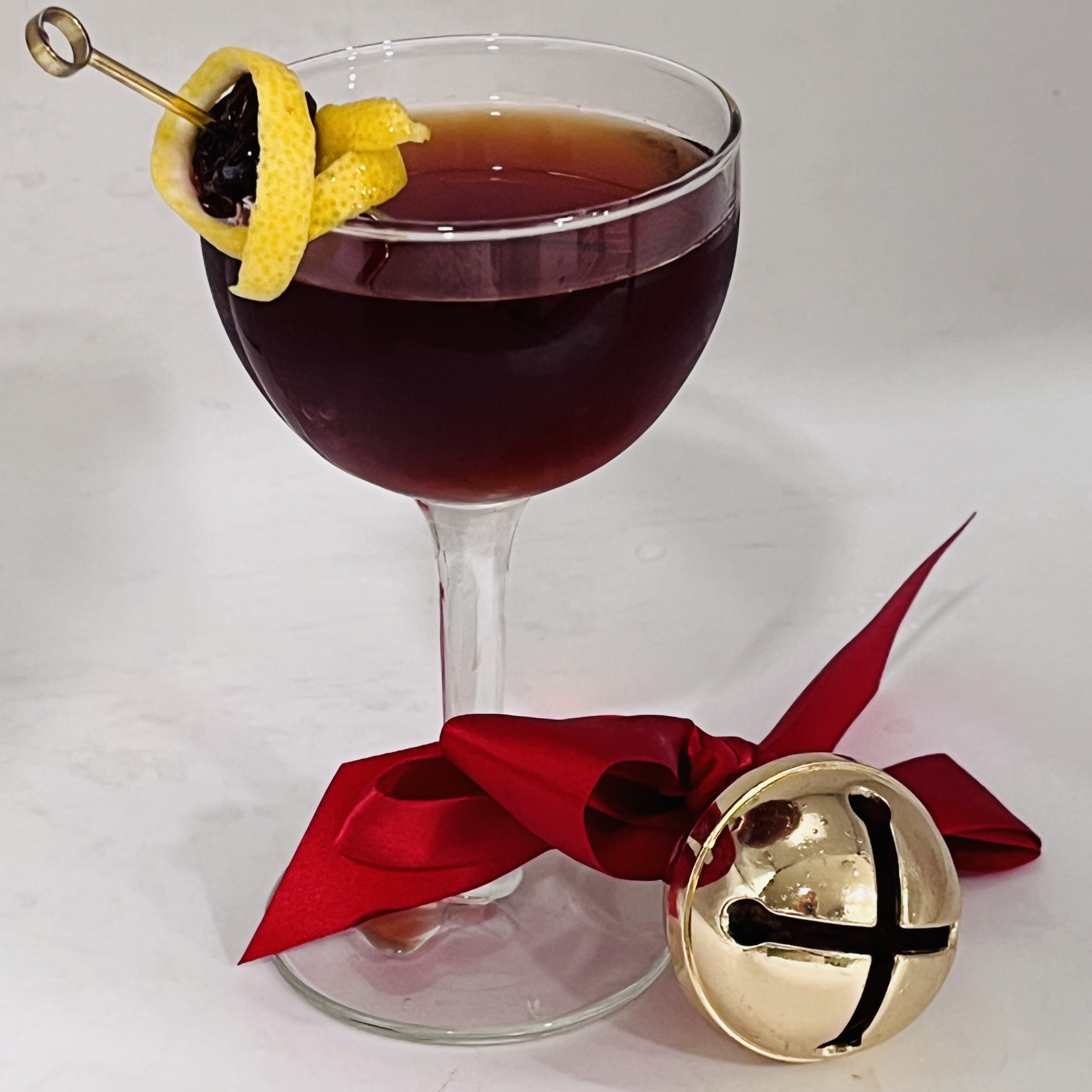 Stir ingredients together in a mixing tin with ice, then strain into a Nick & Nora glass. Garnish with a brandied cherry and lemon twist.