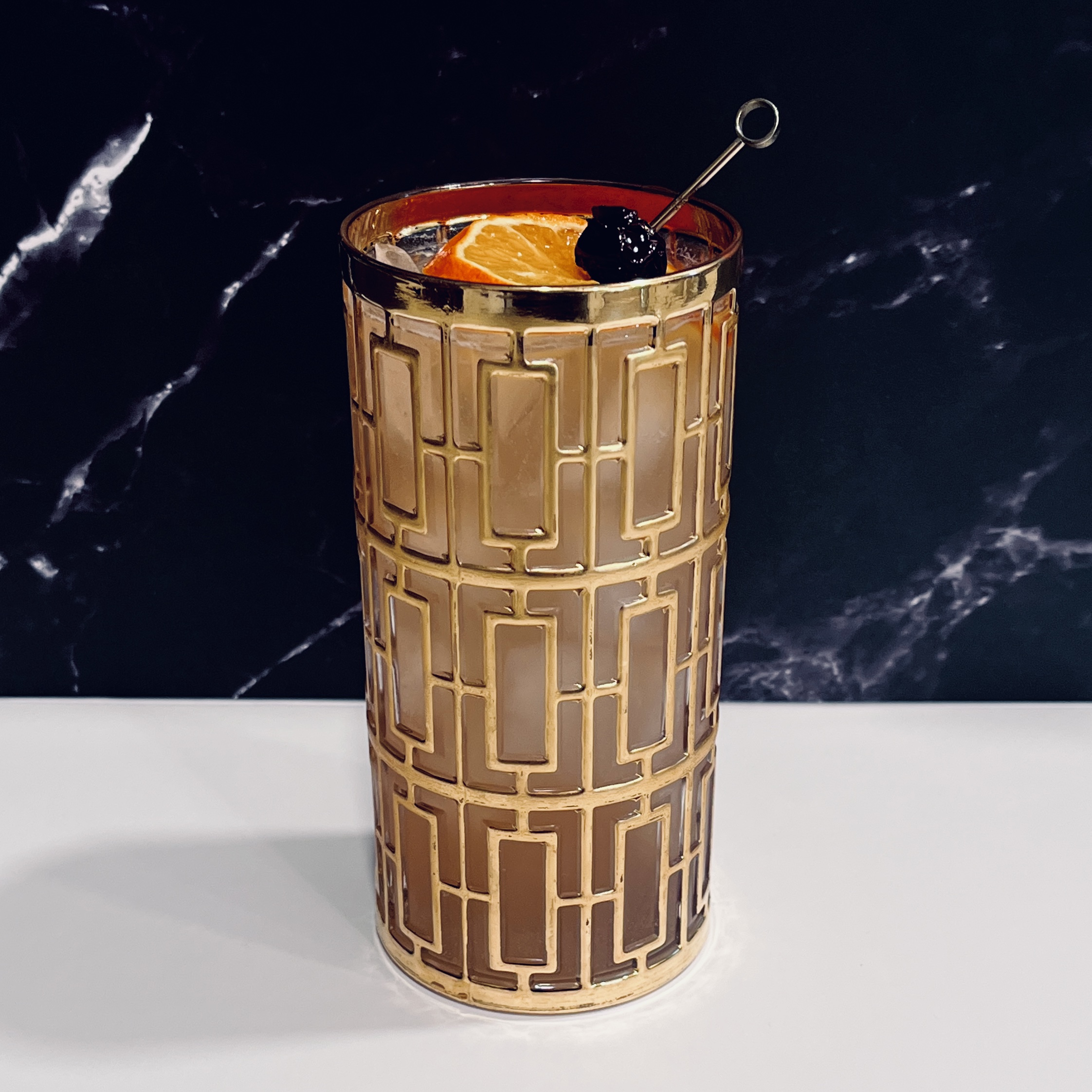 Combine tequila, bourbon, Cointreau, lemon juice, and bitters in a shaker with ice. Shake to chill, then strain into a highball glass filled with fresh ice. Top with sparkling wine and sparkling water, and stir gently. Garnish with an orange slice and cherry.
