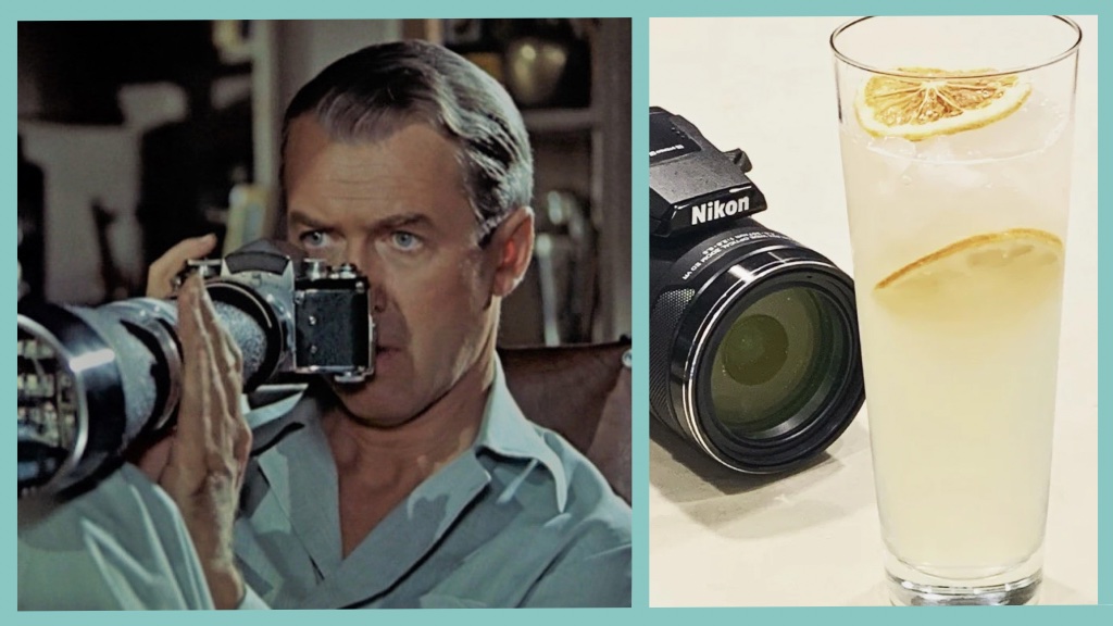 Speaking of Thelma Ritter, I’d like to toast this 20th Century Queen of “Telling it Like it Is”. As the nurse who tends to Jimmy’s  L. B. “Jeff” Jeffries and his broken leg, she admonishes his semi-creepy voyeur habits while simultaneously musing about body disposal and blood spatter. Murderinos unite! When the action heats up, cool down with this Peeping Tom Collins.