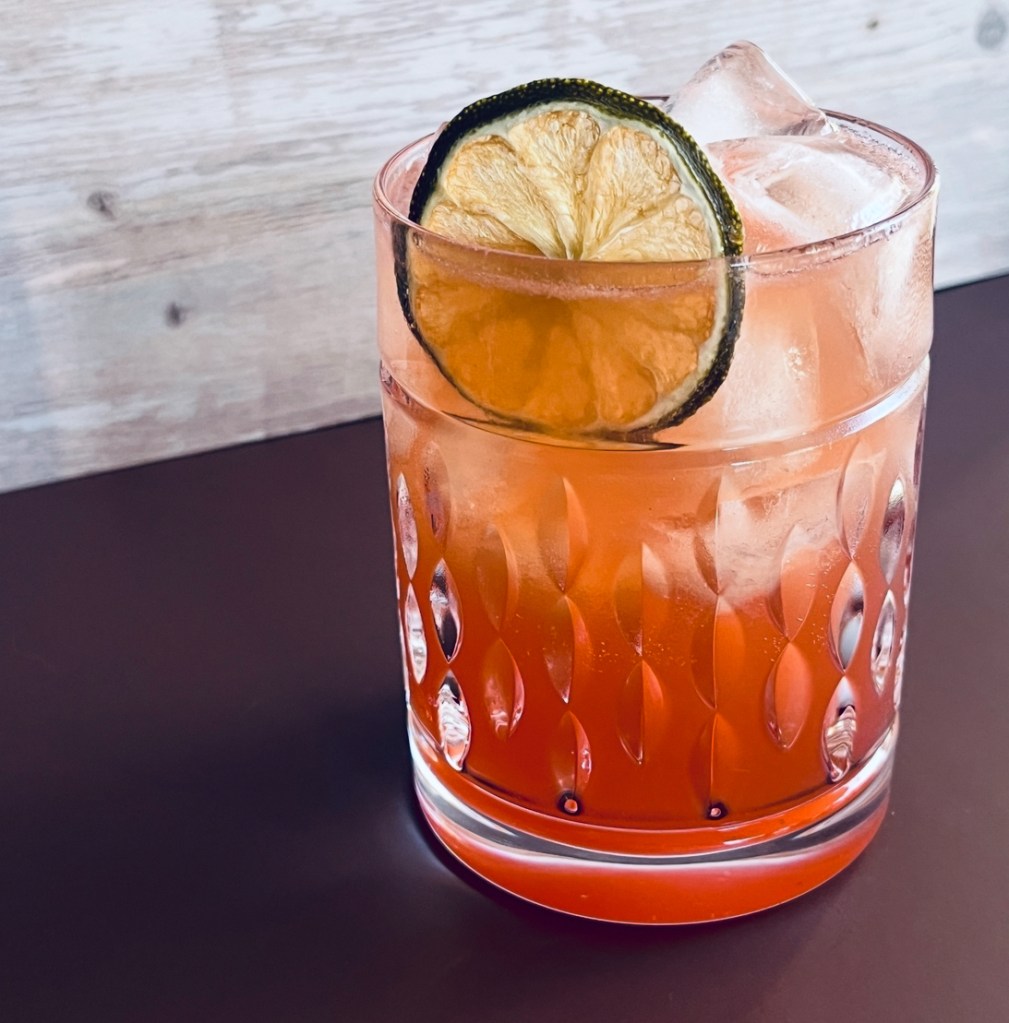 Build drink over ice, stirring to combine. Garnish with a dried lime wheel.