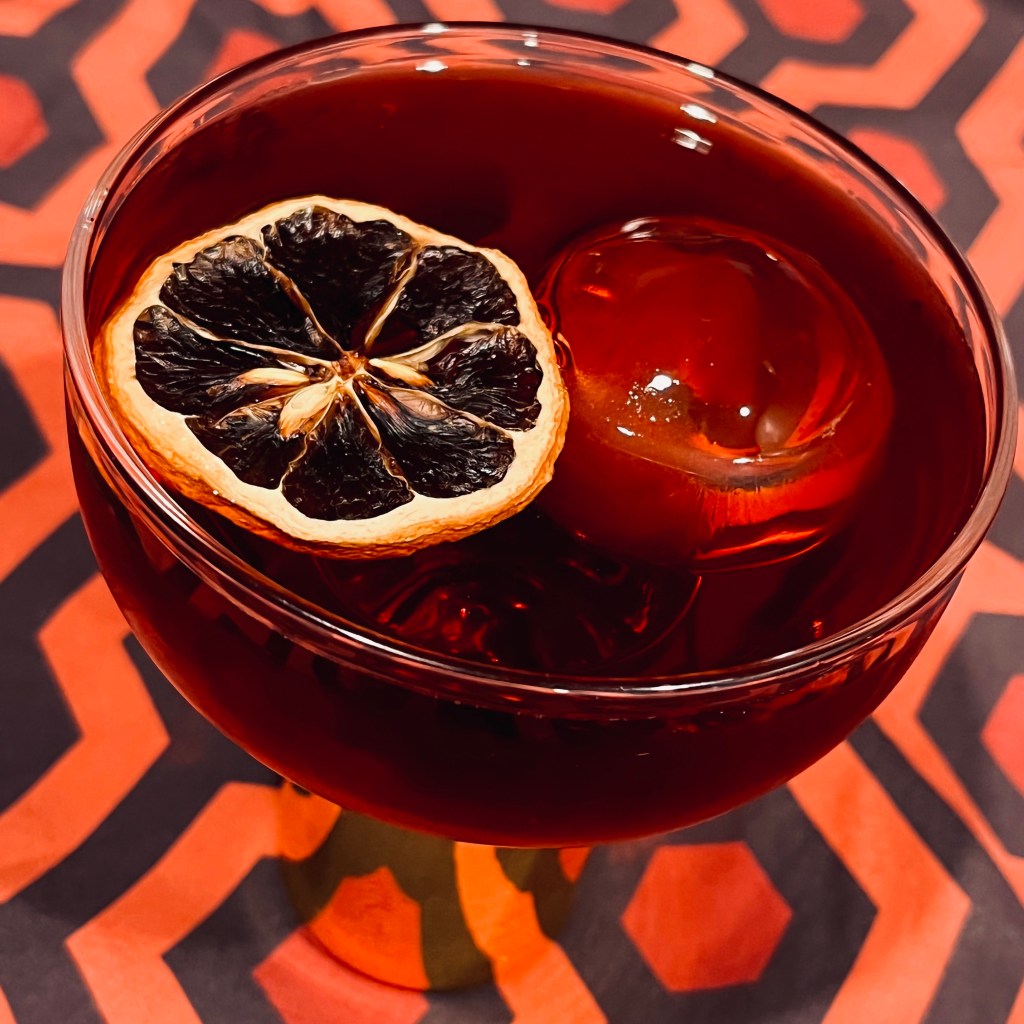 Another dream sequence involves one of my favorite movie bars, host to many glamorous parties throughout The Overlook’s storied history. Lloyd the bartender may have served up a mean Bourbon on the rocks, but I prefer to take my cocktail cue from Danny. While watching The Shining, I recommend drinking this variation on the Negroni, a Redrum cocktail.
