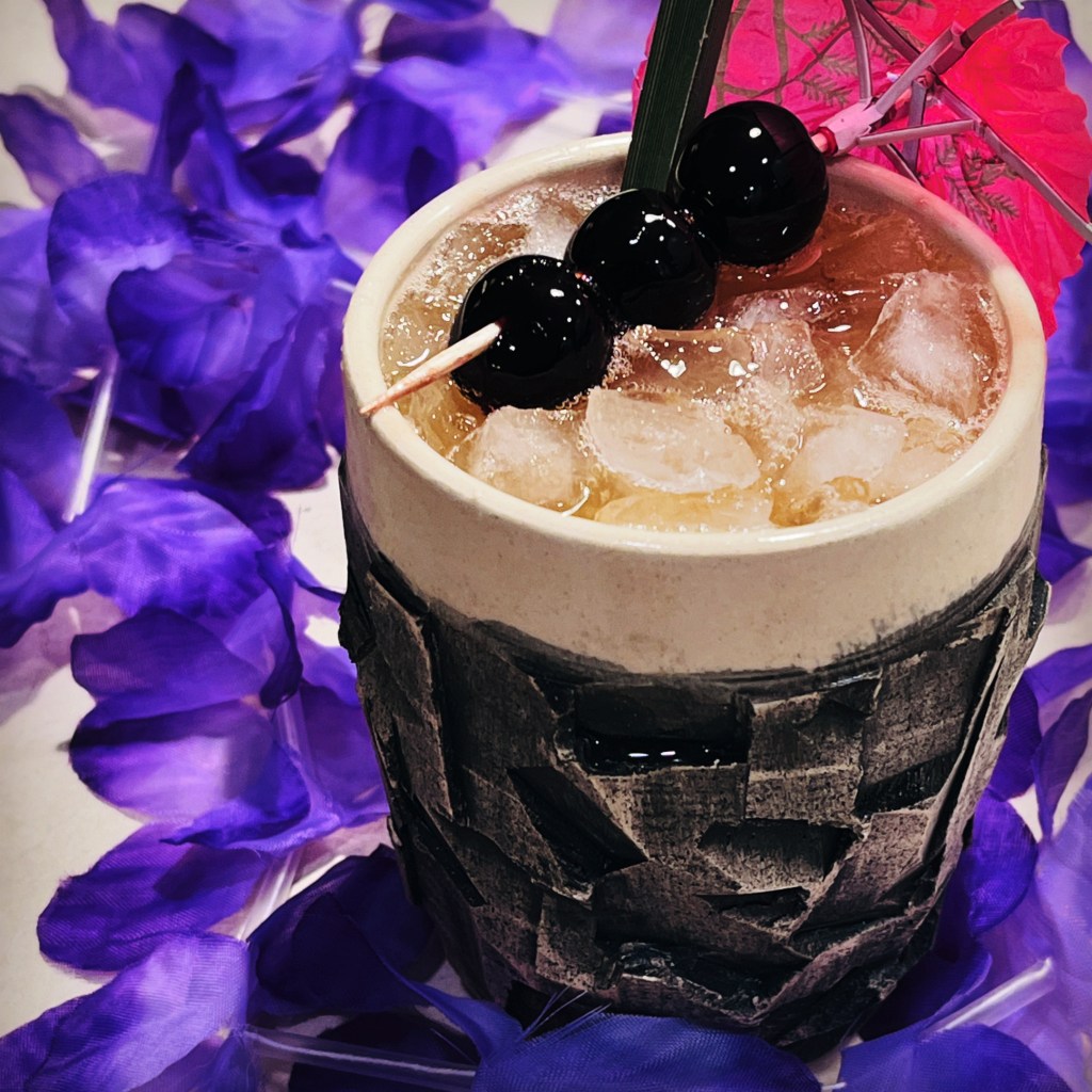 The drink served at the Blue Gardenia is called a Polynesian Pearl Diver, but it doesn’t look like any Pearl Diver I’ve ever seen (see my Goonies post as example). This one has the traditional Navy Grog ice cone, and what looks like a rum floater on top. I assume Don the Beachcomber was not a technical advisor here, but it looks like a tasty concoction nonetheless. While watching The Blue Gardenia, try my interpretation of this film’s lethal cocktail, the Polynesian Pearl Diver.